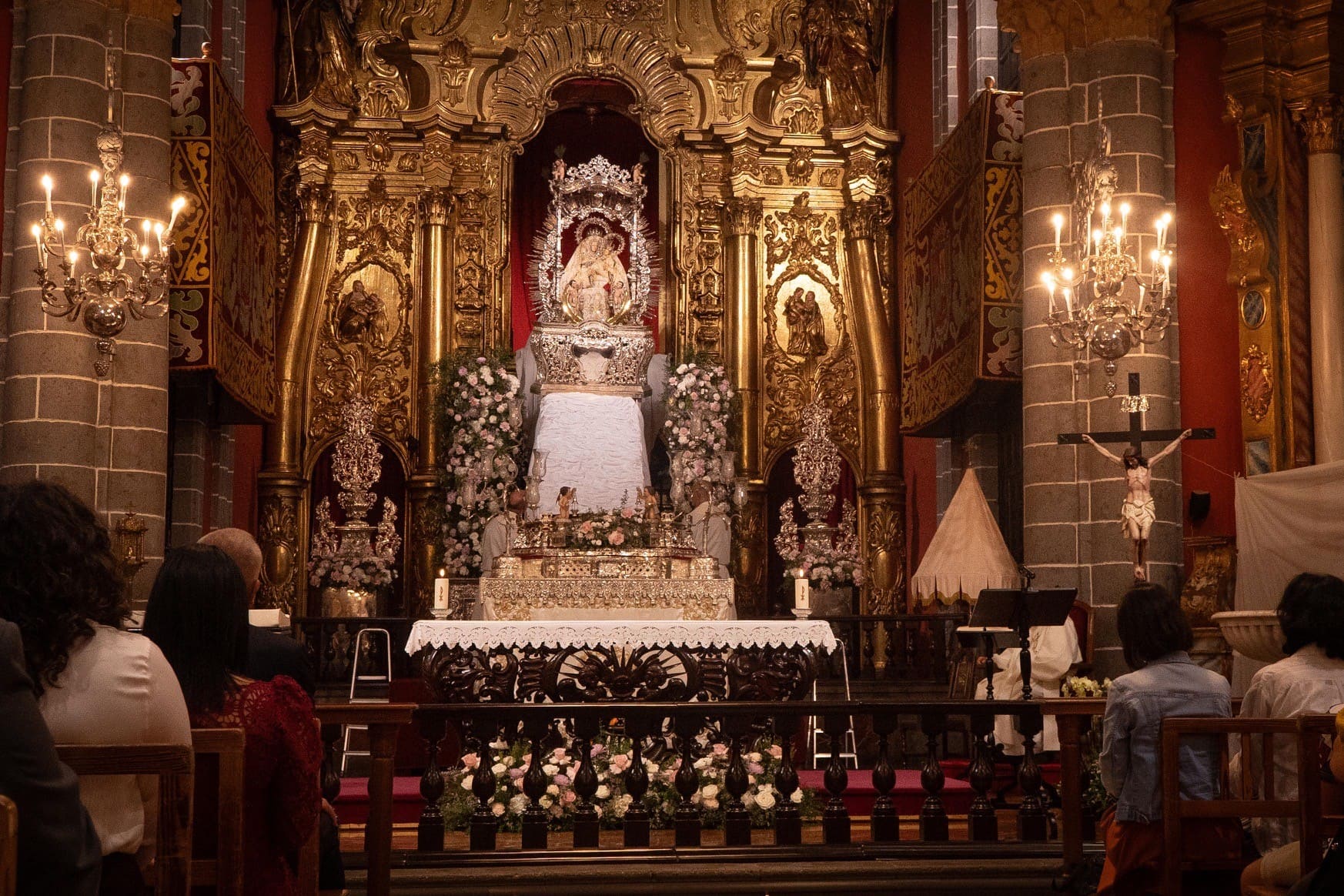 Tras la celebración de la Eucaristía presidida por el sacerdote José Domínguez, este domingo, 12 de octubre, tuvo lugar en la Basílica de Teror el acto de la Subida de la Virgen del Pino. El templo, lleno de fieles, acogió con emoción este momento en el que la patrona de la diócesis de Canarias regresó a su camarín, poniendo fin a los actos celebrados en su honor.
