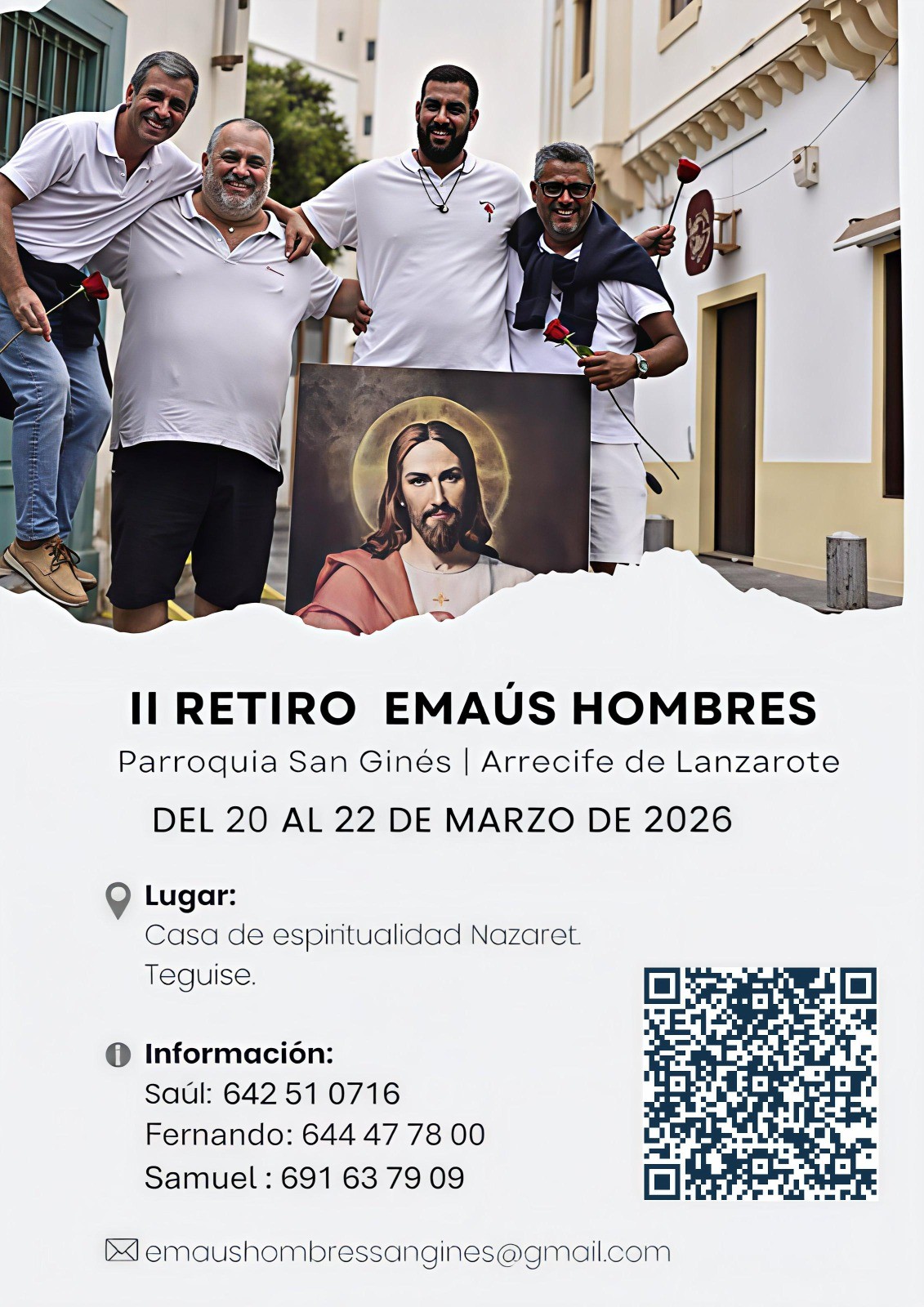 La parroquia San Ginés Obispo, en Arrecife, Lanzarote, ha abierto oficialmente la inscripción para el II Retiro de Emaús para hombres, que se celebrará del 20 al 22 de marzo de 2026 en la Casa de Espiritualidad de Nazaret.