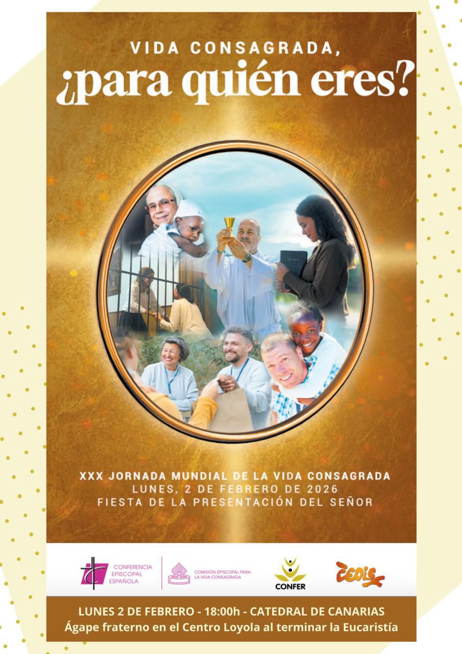 Este año, bajo el lema «¿Para quién eres?», las personas consagradas se reunirán el 2 de febrero, para celebrar la Eucaristía a las 18.00 horas en la Catedral de Canarias, poniendo su vida y misión en manos de Dios y pidiendo al Señor la fidelidad y la renovación vocacional.