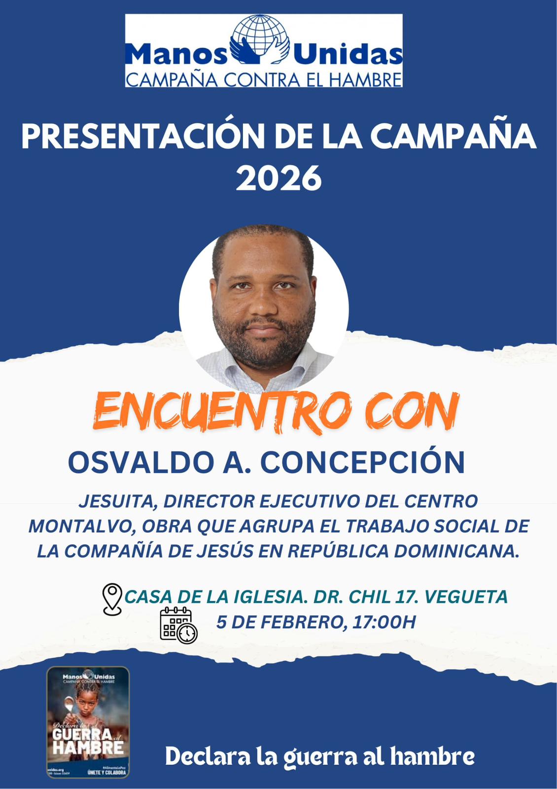 La diócesis acogerá durante la semana del 2 al 8 de febrero la visita del misionero Osvaldo Andrés Concepción, jesuita en República Dominicana, con motivo del lanzamiento de la nueva campaña de Manos Unidas, titulada “Declara la guerra al hambre”.