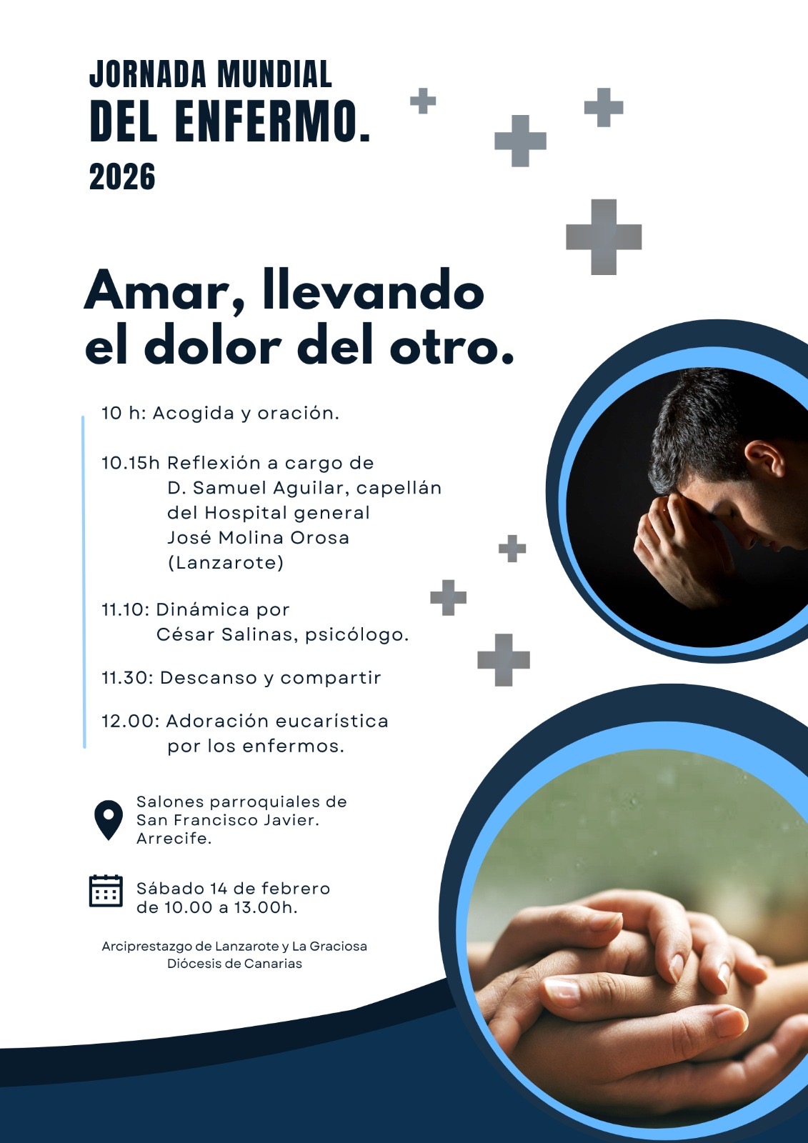 Los salones parroquiales de San Francisco Javier, en Arrecife, acogerán el sábado 14 de febrero la celebración de la Jornada Mundial del Enfermo 2026, una cita organizada por el arciprestazgo de Lanzarote y La Graciosa.