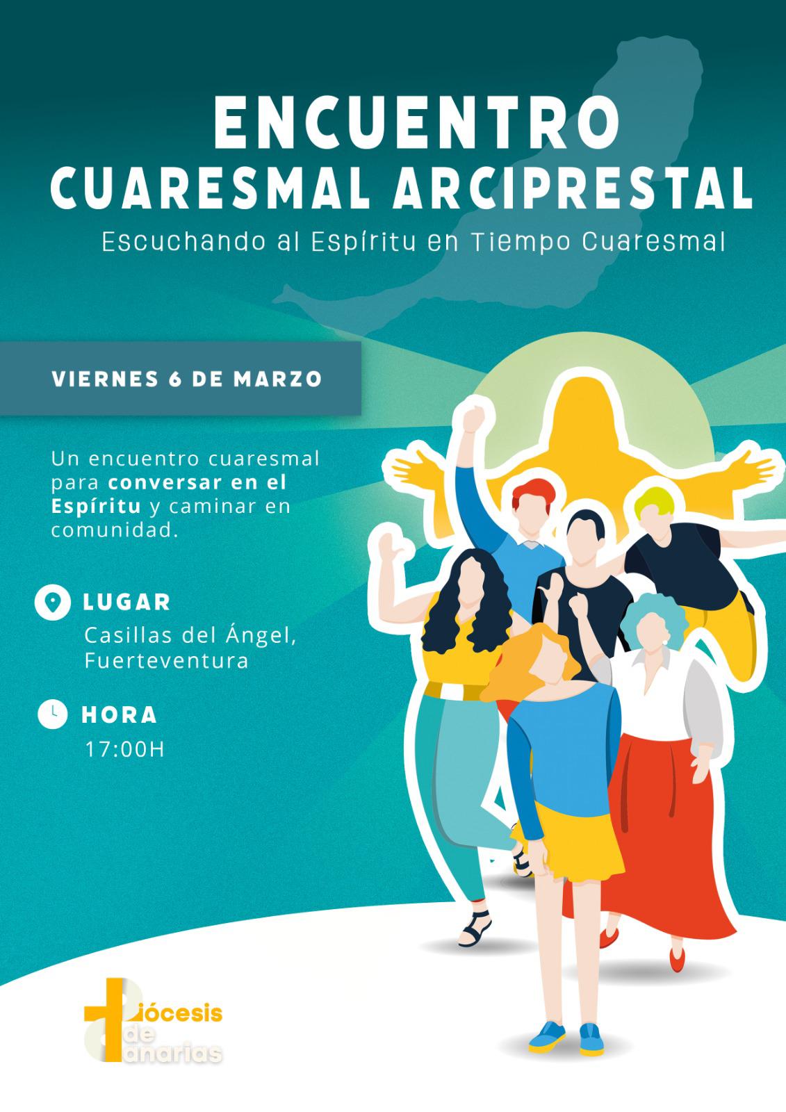 Bajo el lema “Escuchando al Espíritu en Tiempo Cuaresmal”, nuestra diócesis invita a participar en el próximo Encuentro Cuaresmal Arciprestal , un espacio diseñado para conversar en el Espíritu y avanzar juntos en el camino de la evangelización.