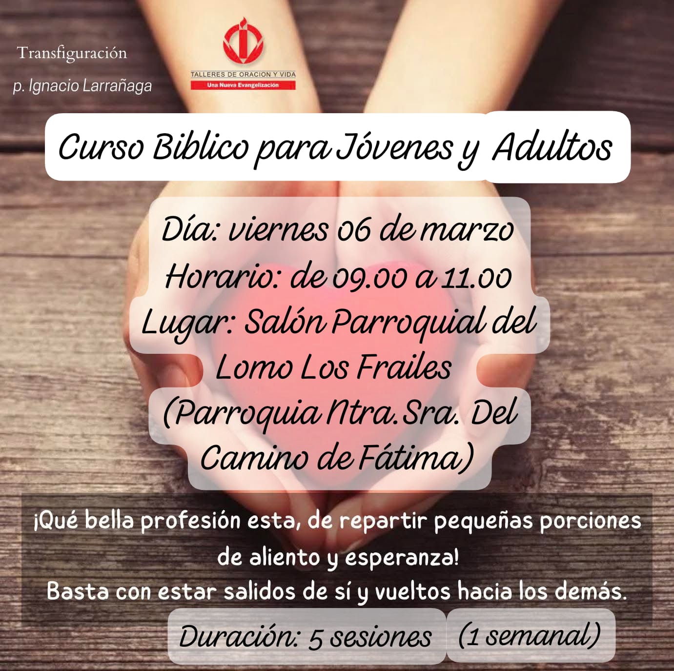 El próximo viernes 6 de marzo, de 9:00 a 11:00 horas, dará comienzo en el salón parroquial de Lomo Los Frailes (parroquia Nuestra Señora del Camino de Fátima) una nueva edición de los Talleres de Oración y Vida para jóveners y adultos, que se desarrollarán durante cinco semanas consecutivas.