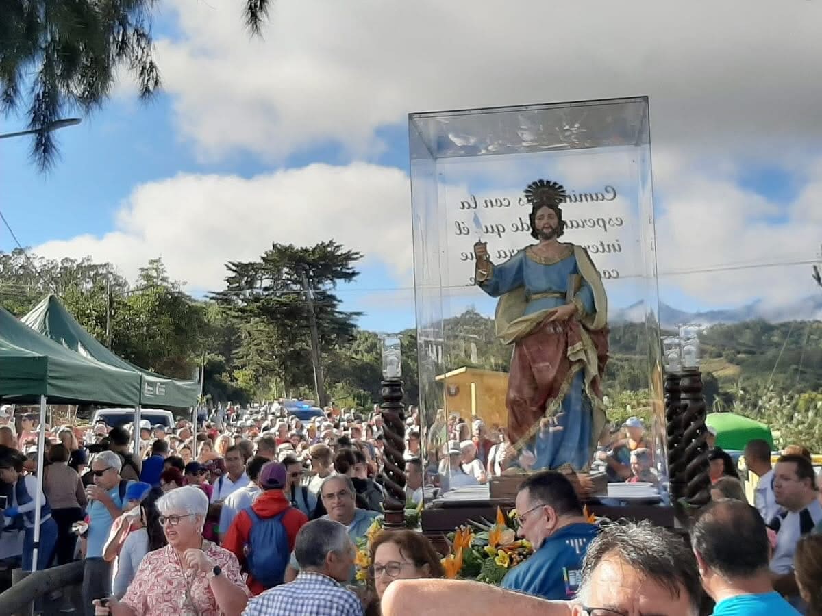 La Villa de Moya vivió una jornada histórica el domingo 19 de octubre con el traslado de la imagen de san Bartolomé desde Fontanales hasta la iglesia de Nuestra Señora de la Candelaria, en el casco de la villa. La peregrinación comenzó a las nueve de la mañana en Fontanales, congregando a cientos de fieles que, a lo largo de los doce kilómetros de recorrido, acompañaron al santo en señal de agradecimiento por su intercesión y protección durante los incendios de 2019. Al llegar al casco, el santo fue recibido entre vítores, aplausos y fuegos artificiales, recorriendo la calle principal hasta la iglesia de Nuestra Señora de la Candelaria, donde lo esperaba la imagen de san Judas Tadeo, copatrono de la villa. Ambas esculturas — obras del insigne artista guiense José Luján Pérez— se encontraron en un emotivo gesto de fe. La jornada concluyó con la Eucaristía de recepción, cantada por el coro de Fontanales.