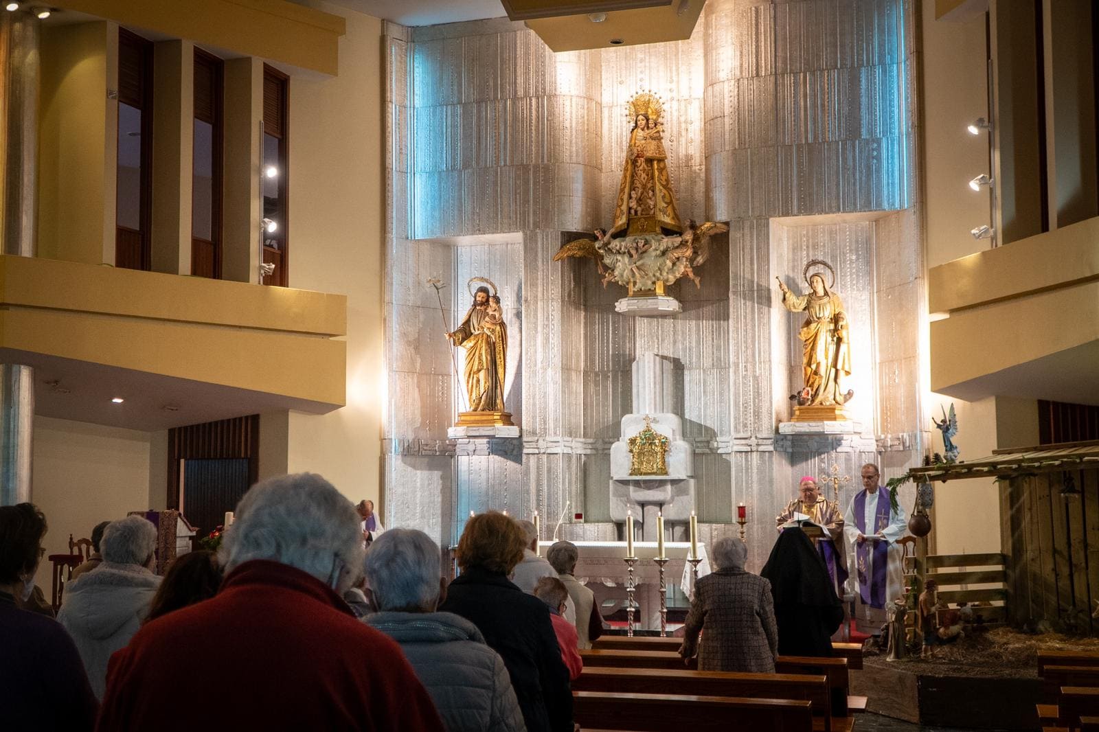 Este sábado, el obispo de la diócesis, Mons. José Mazuelos Pérez, ha presidido una Eucaristía de Acción de Gracias en el Hogar de ancianos Nuestra Señora del Pino, en Tafira, uno de los Templos Jubilares designados para la celebración del Año Jubilar diocesano, siguiendo la invitación del papa Francisco a ofrecer templos jubilares en lugares simbólicos de atención a los enfermos, los ancianos y las personas más vulnerables. En esta Misa concelebraron el delegado del Año Jubilar, Higinio Sánchez, y el capellán del Hogar, Agustín Monroy, acompañados por residentes, religiosas y personal del centro, así como familiares y diocesanos de distintos lugares.