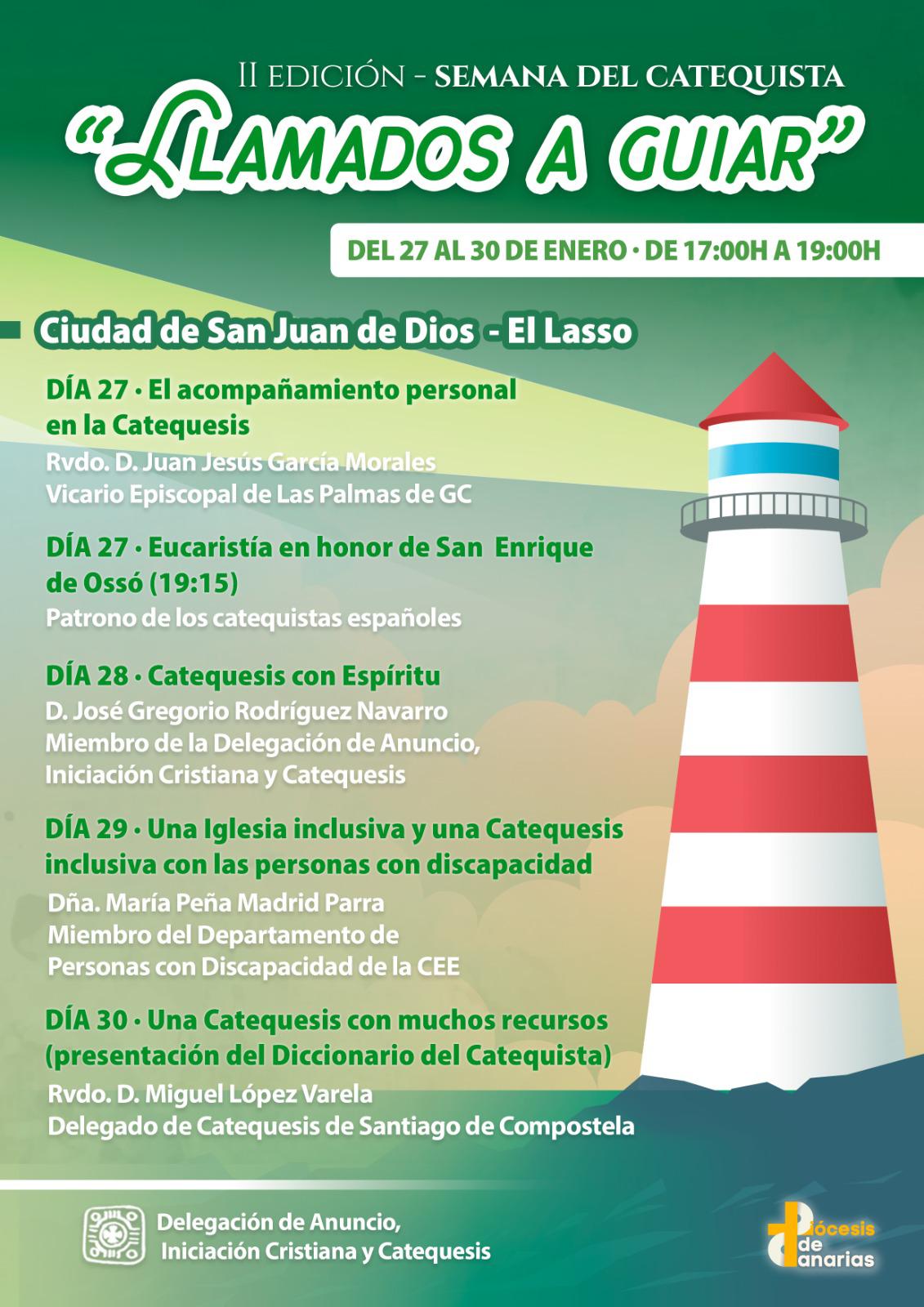 Del 27 al 30 de enero, la Ciudad de San Juan de Dios, El Lasso, acogerá la II Semana del catequista, una iniciativa formativa organizada por la delegación de Anuncio, Iniciación Cristiana y Catequesis de la diócesis de Canarias, que abordará el acompañamiento personal, la catequesis con Espíritu, la inclusión de las personas con discapacidad y los recursos al servicio de la catequesis.