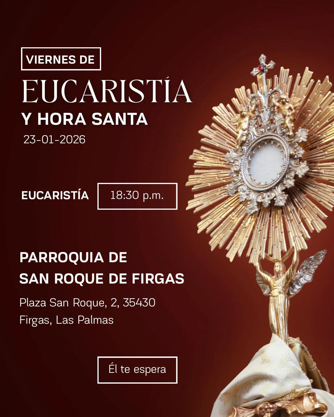 Con la participación de los grupos de jóvenes de Effetá, Hakuna y Bartimeo de Gran Canaria, la parroquia San Roque, Firgas, acoge un encuentro de celebración y adoración eucarística el próximo viernes 23 de enero a las 18:30 horas.