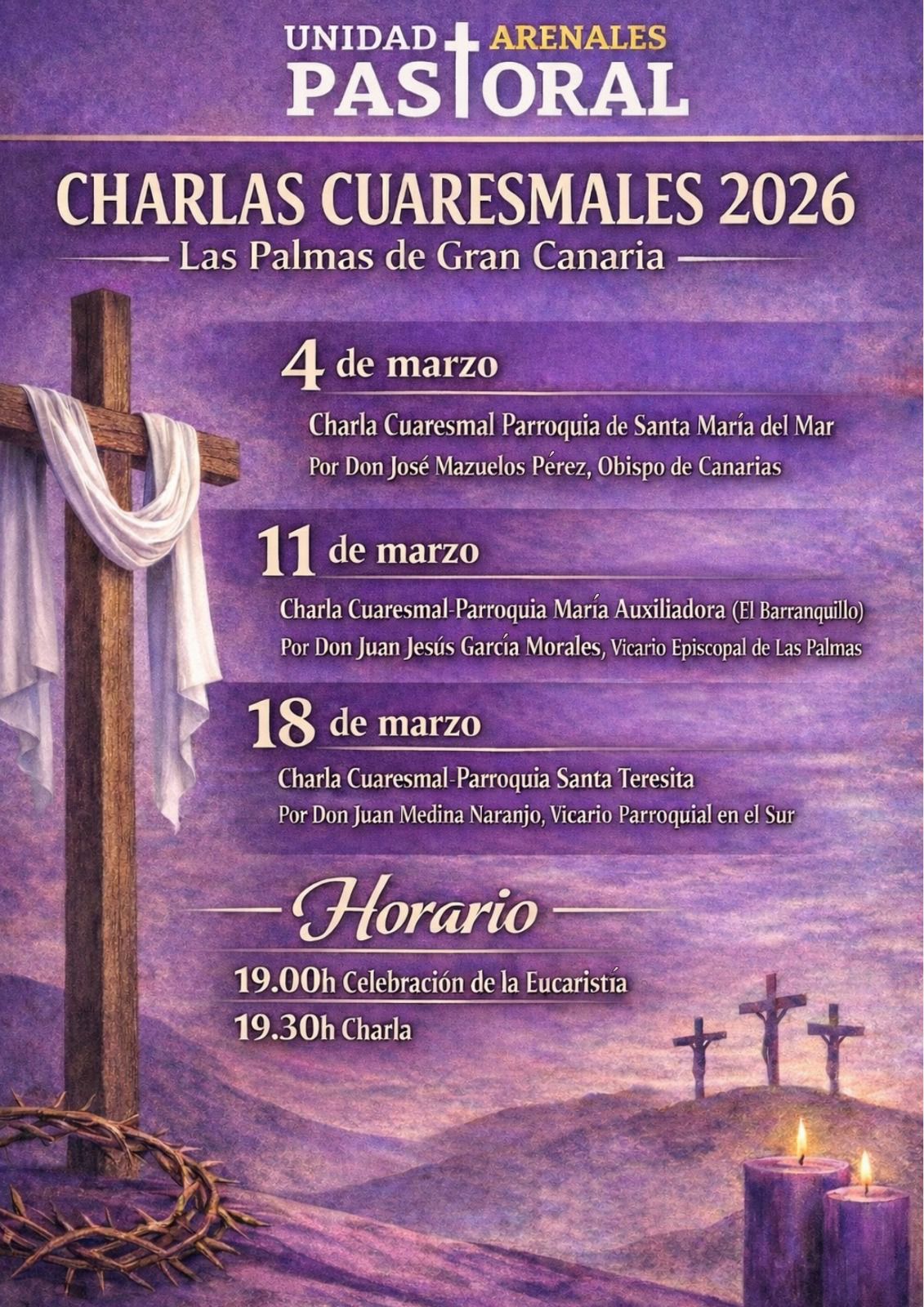 La Unidad Pastoral Arenales, en Las Palmas de Gran Canaria, celebrará durante el mes de marzo sus charlas cuaresmales.