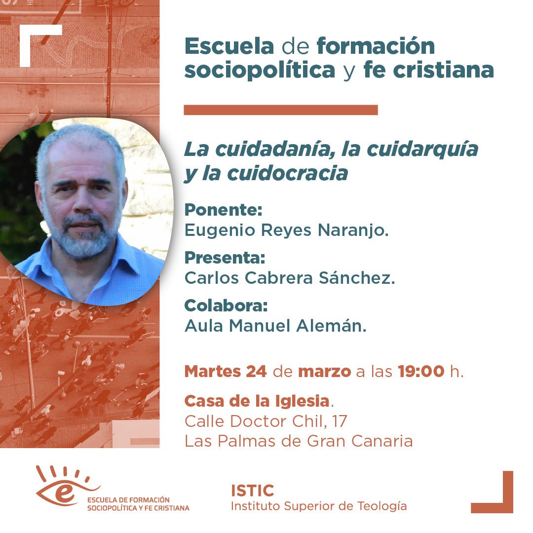 En esta ocasión contaremos con la participación de Eugenio Reyes, quien ofrecerá una reflexión bajo el título “La ciudadanía, la cuidarquía y la cuidocracia”. La propuesta invita a repensar la vida pública desde la lógica del cuidado: cuidar a las personas, a la comunidad y a la casa común como eje fundamental de la participación ciudadana.