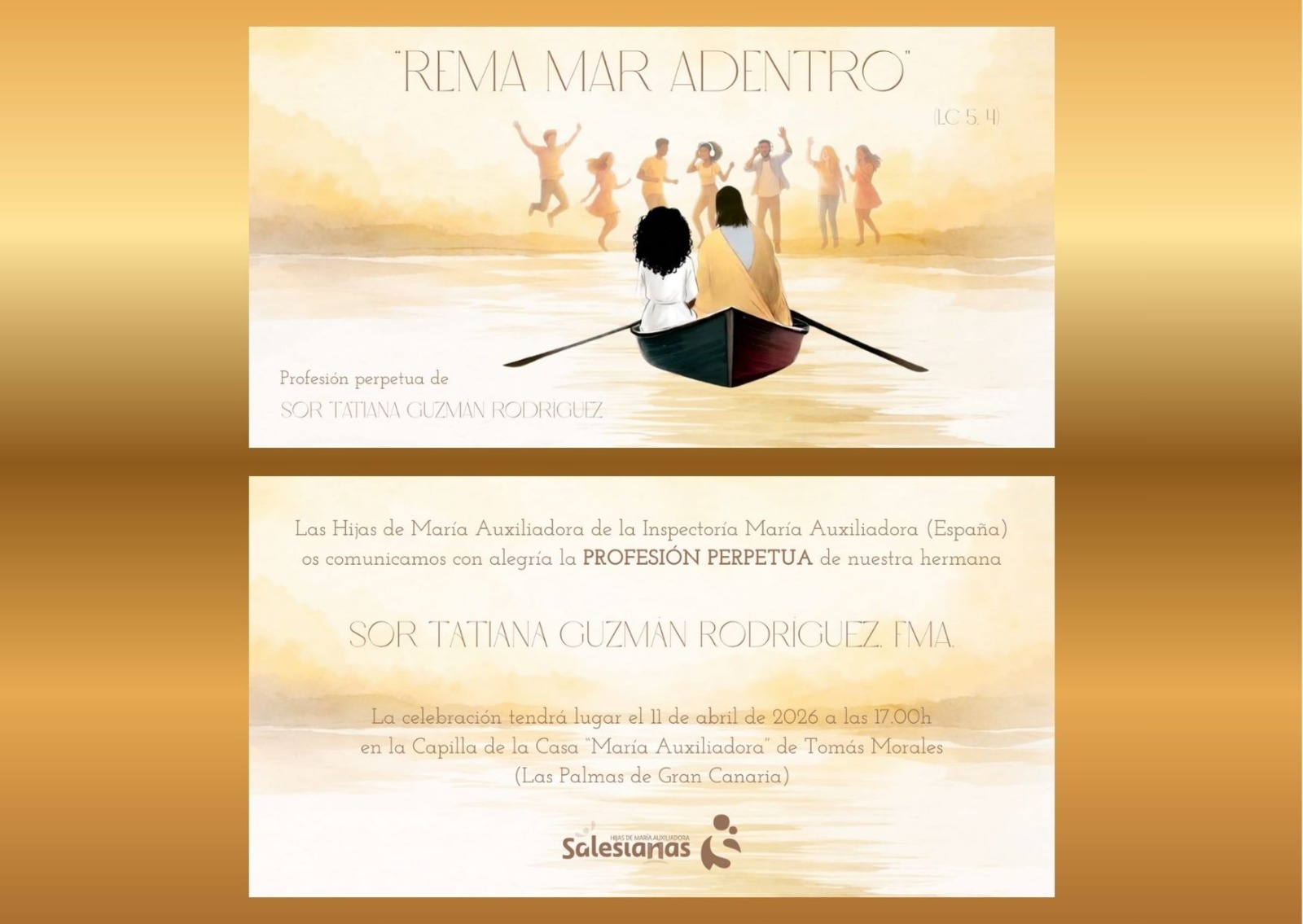La celebración tendrá lugar en la iglesia del colegio María Auxiliadora, situada en el Paseo de Tomás Morales, número 41. Se espera la participación de familiares, miembros de la comunidad educativa y religiosa, así como numerosos jóvenes vinculados a la familia salesiana.