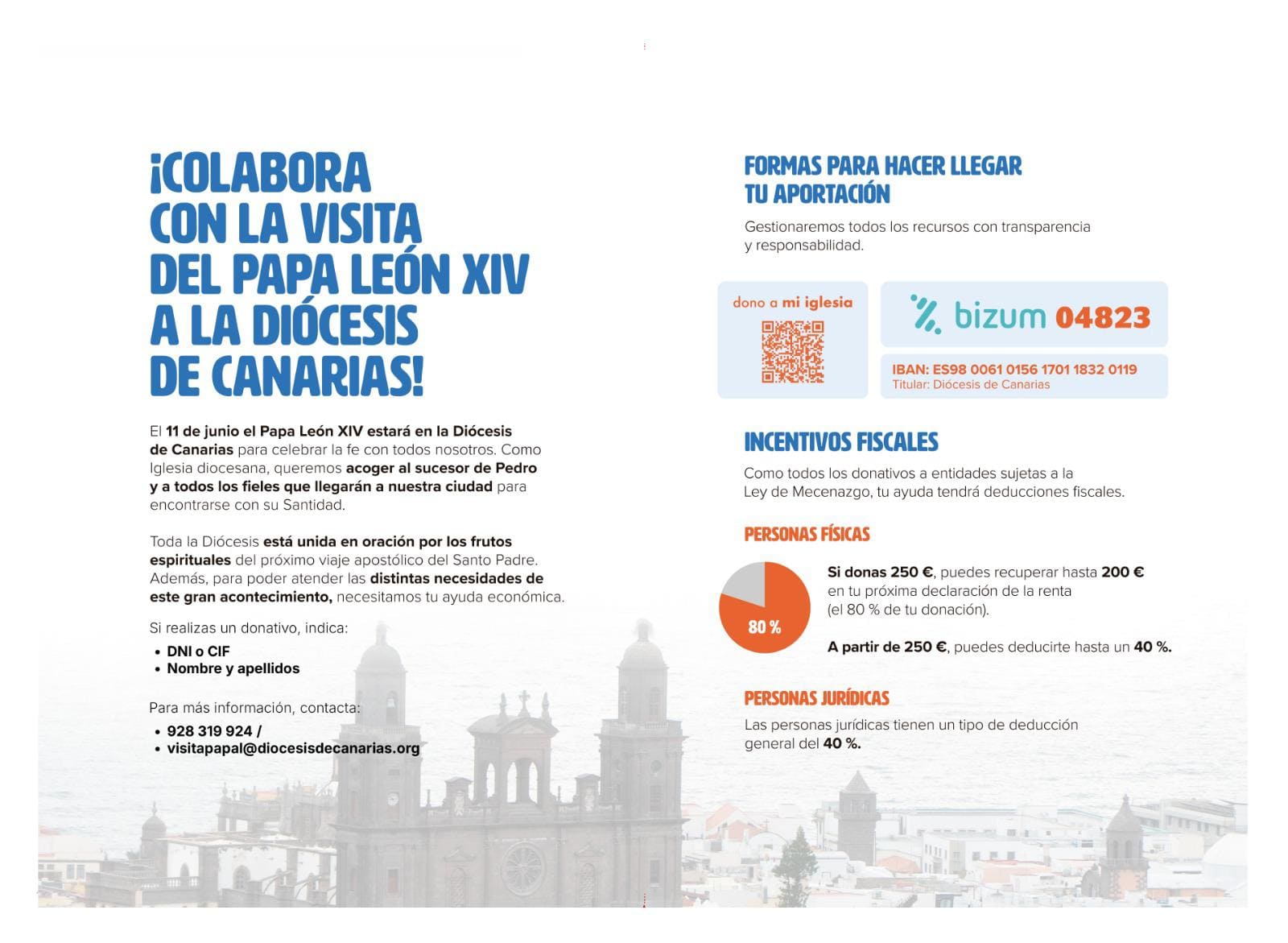 La diócesis de Canarias informa de un error en la información difundida anteriormente sobre las vías de colaboración económica con motivo de la visita del papa León XIV el próximo 11 de junio.